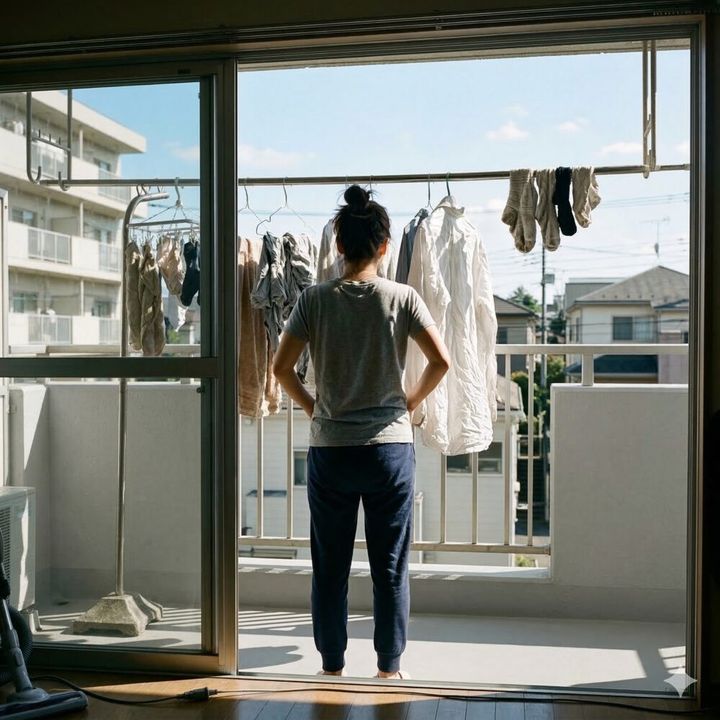 私は夫に洗濯物干しを任せ、自分は掃除機をかけることにしました。