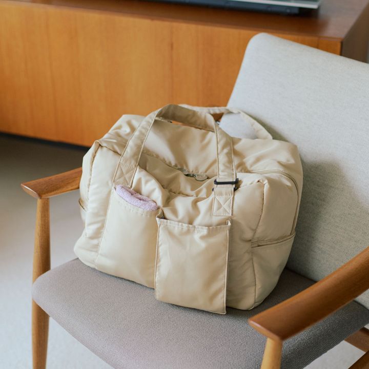 「子育てしながら機能性を追求した『マミータ』のマザーズバッグ。軽くて汚れがつきにくいクッション性のナイロン素材で、肩に食い込まずストレスフリー。外側にはウエットティッシュが入るポケット、内側には哺乳瓶が入れられる保冷スタンド、取り外し可能なオムツ替えシートなど、とにかく使いやすい♪ 2~3泊程度の旅行にも行ける収納力の高さも自慢。これ以上のバッグはないと自負しています!」