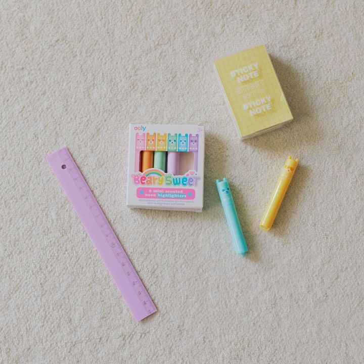 「定規、メモ帳、ペンはすべて『プラザ』で。カラフルな色合いとデザインが可愛くて! 娘はお絵描きが大好きなので、メモ帳とペンは忘れずに。外食時の待ち時間やカフェで過ごすときに、親子でお絵描きしりとりをして楽しんでいます」