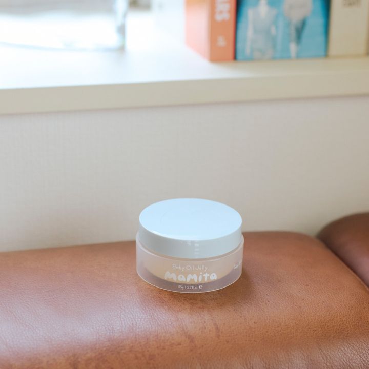 「『マミータ』のベビーオイルゼリーは、娘の全身保湿ケアに使っていて、私もお風呂上がりに塗っています。お風呂上がりは時間が勝負。濡れている間にパパッと馴染ませれば、ボディケアは完了。固形のオイルタイプですが、肌にのせると溶けるように馴染むのがお気に入り。新生児にも使えるので、家族全員で愛用する予定です!」