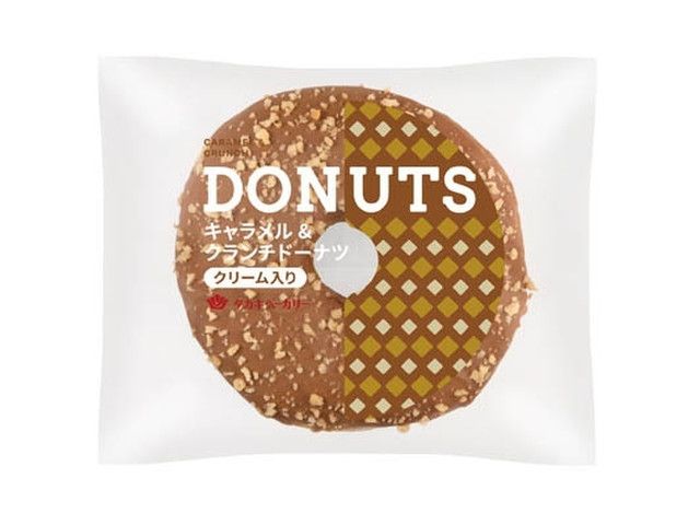 期間限定でテスト販売中! 中にはクリーム、上はチョココーティングにトッピングを重ねた、満足感のあるドーナツです。カフェや専門店のドーナツをイメージし、本格的な見た目&味わいに仕上げました。 ※取扱店・期間限定のテスト販売商品です。 しっとりとしたプレーンドーナツに、濃厚な味わいのキャラメルフィリングを注入。表面はキャラメルチョコで贅沢にコーティングし、仕上げにキャラメルクランチをトッピングしました。キャラメルの甘くて香ばしい味わいが広がります。 ●生地底面にある複数の穴はクリームの注入口です。 →特集ページはこちら カロリー:397kcal