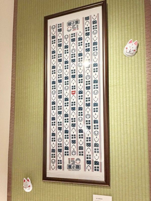 店内を彩る、狸小路商店街150周年を記念したてぬぐい