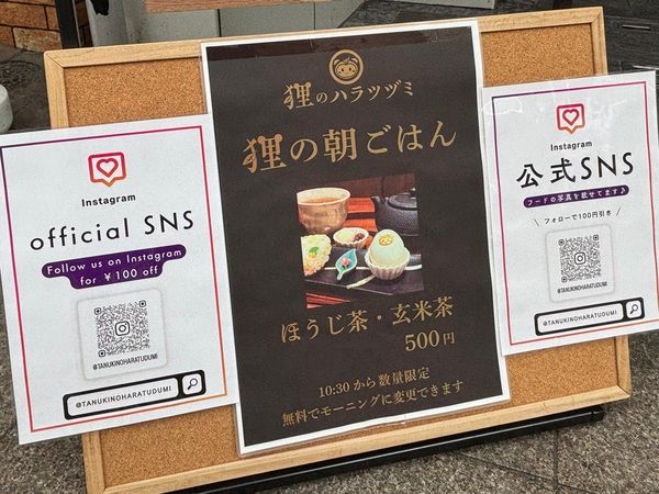 3. 【狸小路】日本茶3杯分がセット?!和風モーニング500円!甘味処「狸のハラツヅミ」