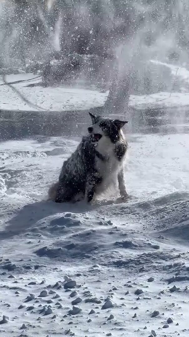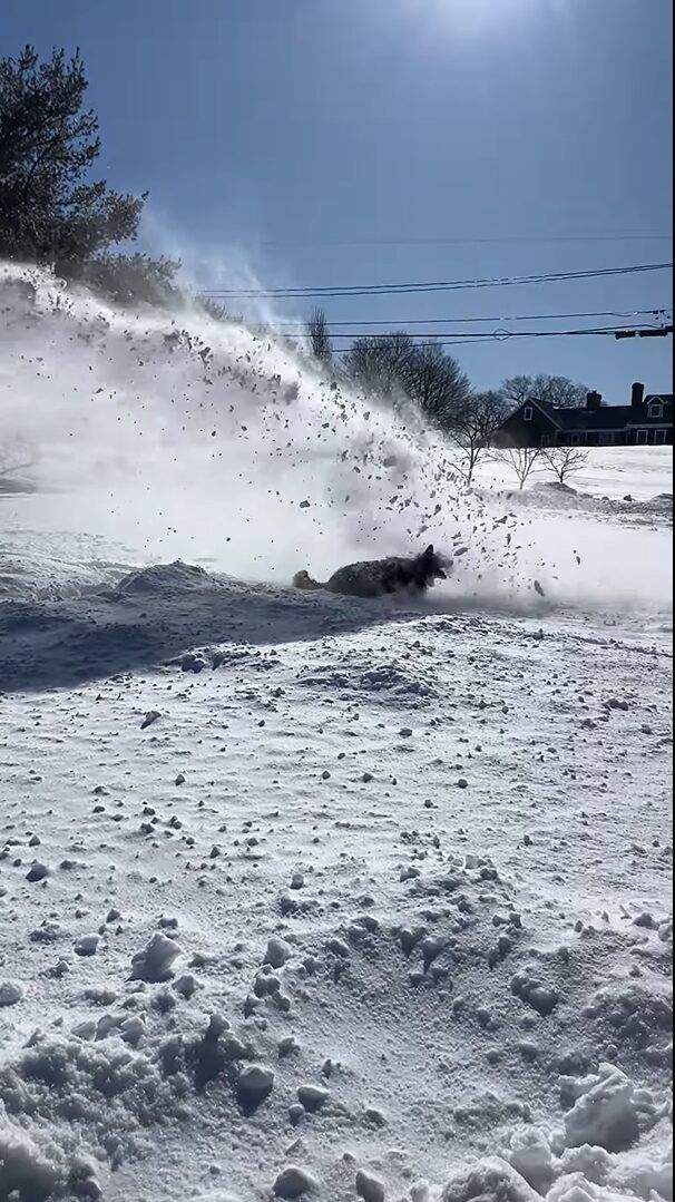 しかも、この子は排泄される雪を追って雪の中を駆けていくではないですか。 もしかして、撮影者さんたちが除雪機を借りに来たのを見て、ジェイクは楽しく遊べると察知してやってきたのでしょうか。