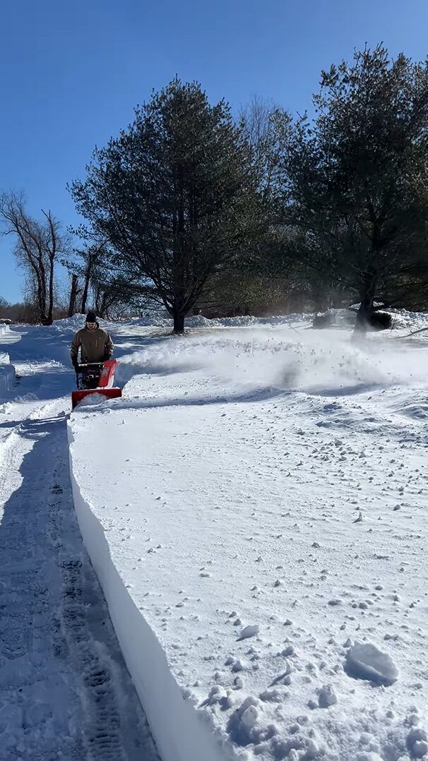 借りてきた除雪機で排雪作業をしていたら・・。楽しそうに遊ぶ子もついてきました!!【アメリカ・動画】