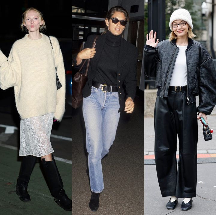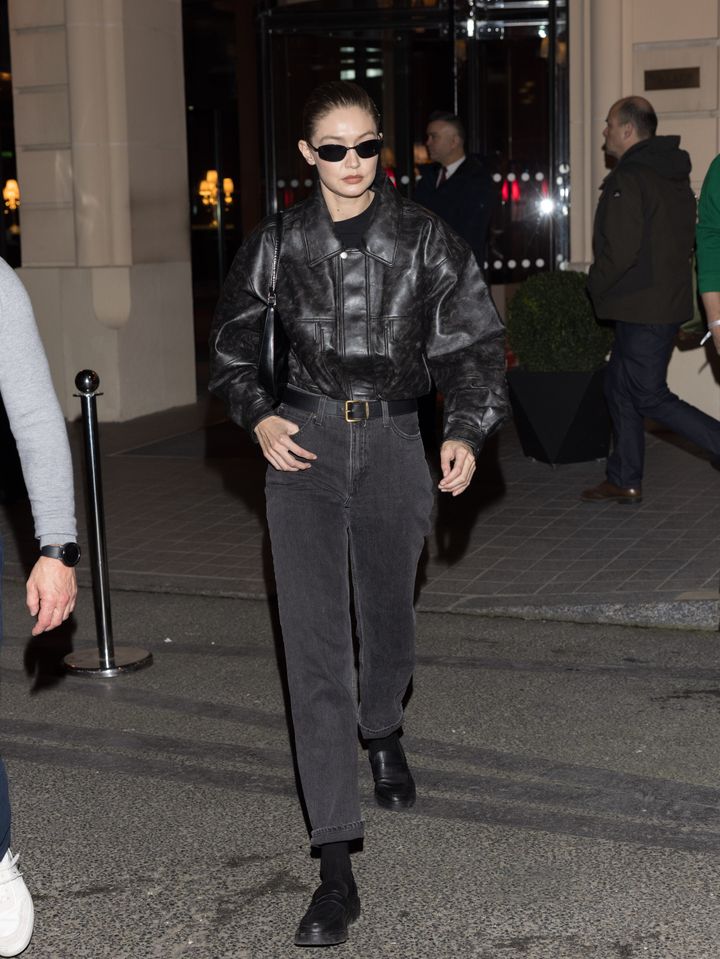 時代を超えて、オールブラックのコーディネートはモデルたちのオフデューティスタイルの中心であり続けている。ジジ・ハディッドをお手本に、ヴィンテージライクなレザーボンバージャケットに色落ちしたグレーデニム、そしてミニマルなフラットシューズを合わせてみよう。また、彼女のルックが証明しているように、しっかりした作りのレザーベルトは、長年にわたって活躍してくれる投資価値大のアイテムだ。