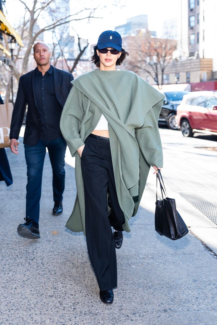 オフのケンダル・ジェンナーは、白Tシャツ&シンプルなボトムスという定番スタイルに、「ザ・ロウ」のコートとマフラーをリンクさせたり、スカーフ付きコートを羽織ったりする姿がよく確認されている。バッグと靴は上品な黒いレザーでまとめてカジュアルになりすぎないようにして、ベースボールキャップとクールなサングラスで仕上げよう。