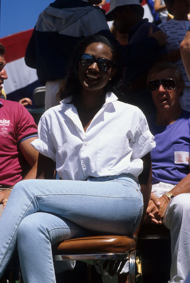 1990年代を通じて、黒いタートルネックニットとデニムのコンボはシンディ・クロフォードの定番スタイルのひとつとなった。彼女のアイコニックな空港ファッションは、茶色のスエードや黒いレザーとのコントラストを効かせたものが多く、当時のおしゃれセレブのひとり、キャロリン・ベセット=ケネディも、同様の着こなしがお気に入りだった。