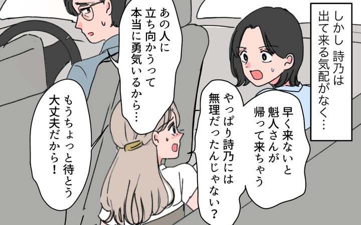 そこで以前、魁人と同じプロジェクトで苦しめられた経験を持つ佐藤さんにサポートを依頼。魁人が仕事で家に帰るのが遅い時を狙って詩乃を助け出すことにしたのです。