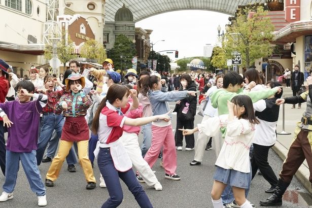 続いて、ハリウッド・エリアのストリートで「Discover U!!! タイム」を体験。25周年のテーマ“Discover U!!!”のためにVaundyが書き下ろした新曲『Destiny Journeys』が鳴り響くなか、みんなでダンスに挑戦!楽曲が流れ始めるとクルーが集まってきて、ダンスのレクチャーがスタート。手で25やUを表現したり、新しい扉を開けたりする振り付けを覚えて音楽に合わせて踊れば、お祭り気分は最高潮!パークの一員になった気分がうれしく、すぐに口ずさめるキャッチーな歌詞も印象的だった。