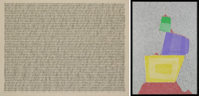 左:カミジョウ ミカ「イエローで白い黒の進化」 / 右:ルイス・フェリペ・ダビラ「HACIA MI DESEO(私の欲望に向かって)」