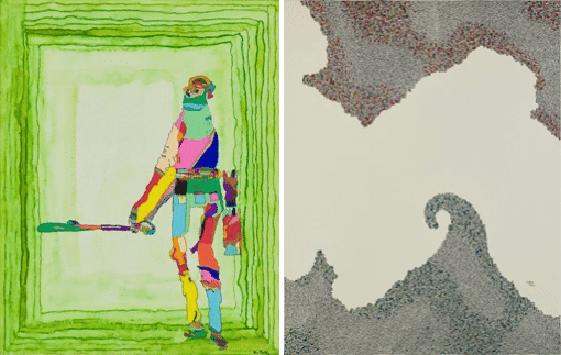 左:オーシャン「Time Got Away From Me 1(私から過ぎ去った時間)」 / 右:鳥山シュウ「つみかさなる」