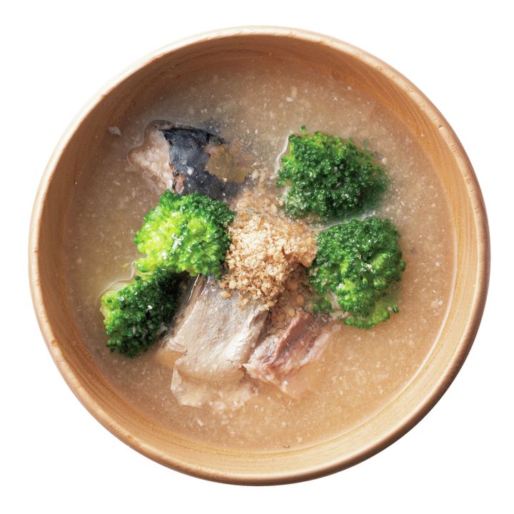 ▶︎サバ缶とブロッコリーの胡麻入り味噌汁