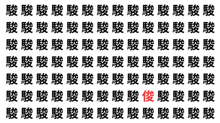 たくさんの「駿」の中に、よく似た別の漢字が1文字だけ隠れています。