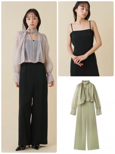 透け感が美しい長袖ボレロとキャミオールインワンのセットアイテム。セットで着こなすのはもちろん、それぞれ単品使いもできるのでコスパ抜群です。