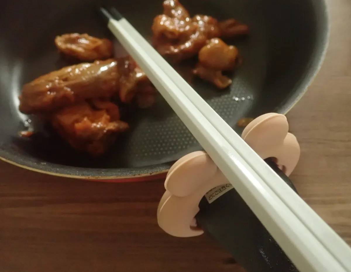 フライパンや片手鍋の取っ手に本体を挟んだら、菜箸などの調理用ツールを置くだけ♪