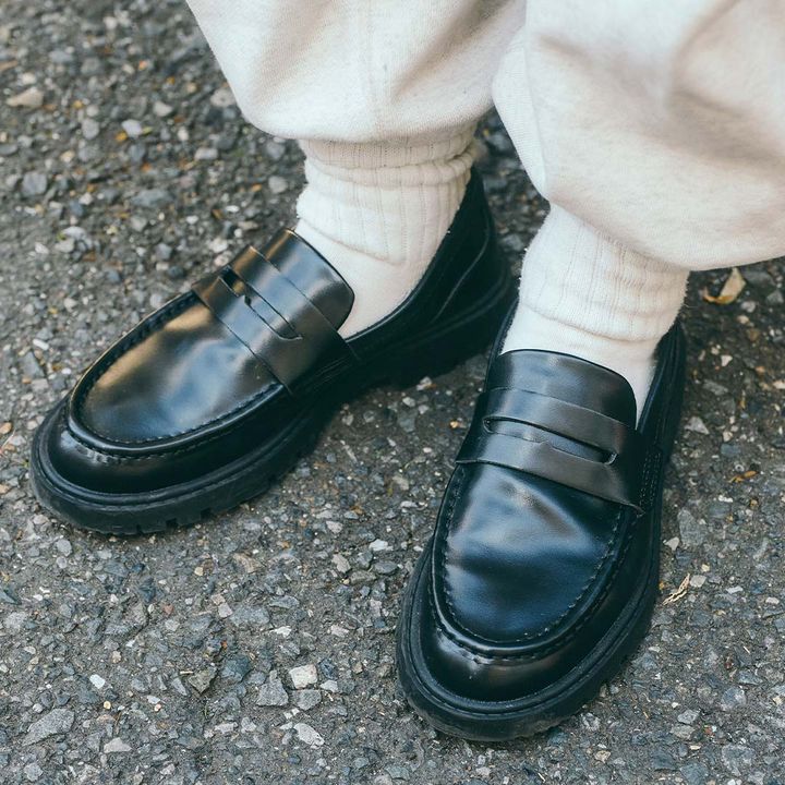 足元は『ザラ キッズ』のブラックローファーをオン。ホワイトソックスと合わせてプレッピースタイルで引き締め!
