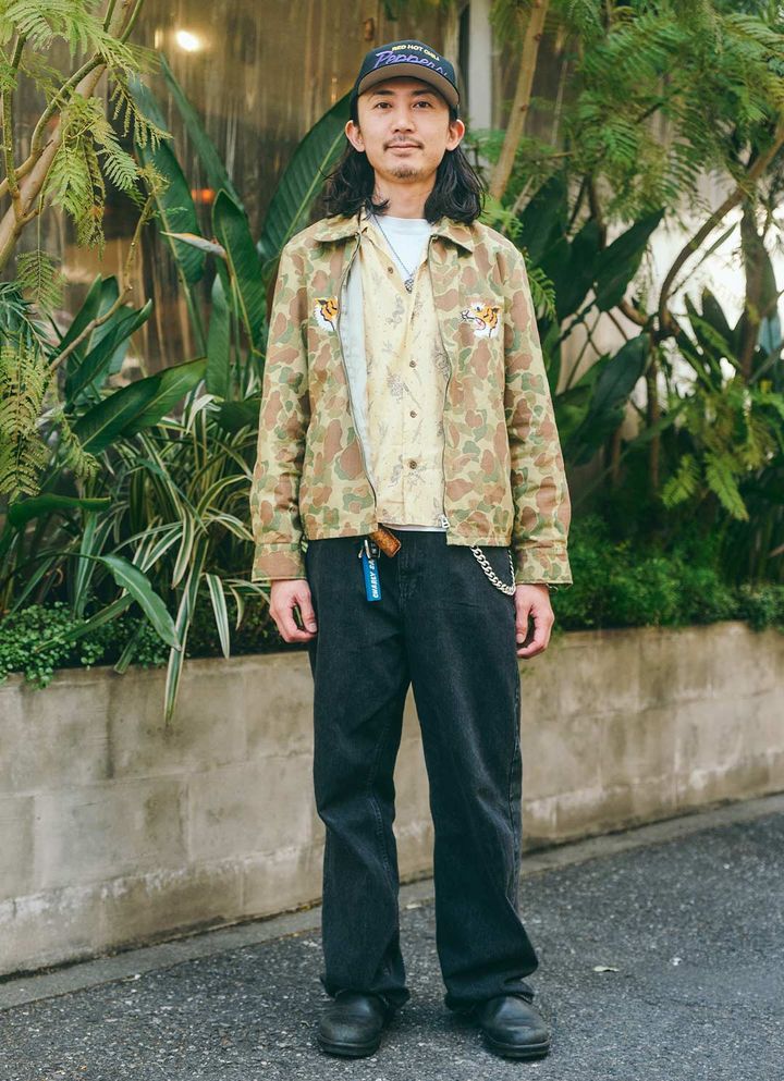 『ブランドストーン』のシューズは、無骨なフォルムがミリタリーテイストにぴったり。ボトムスとともにダークトーンでまとめて、統一感を演出したのがグッド!