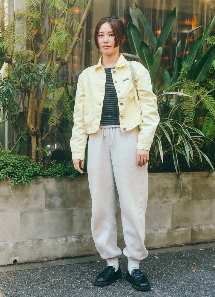 レモンイエローのアウターとのグラデーションが春らしさ満点♪ イーストウエストなフォルムでトレンドもしっかりキャッチ!
