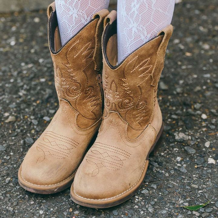 ステッチワークが効いた『H&M』のウエスタンシューズ。レースタイツとの組み合わせて甘辛く昇華!