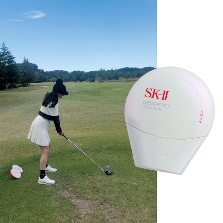 「ゴルフのラウンドをまわるときは、SK-ⅡのCCプライマーのローズが必需品。SPF最高値でしっかりUV対策しながら、自然なトーンアップが叶うので手放せません」
