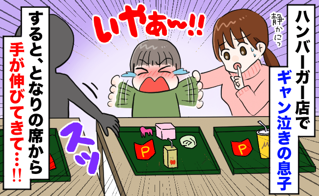 3. 「えっ!?」隣のテーブルから突然スッと手が…息子がピタッと泣き止んだワケ!ハンバーガー店で何が?