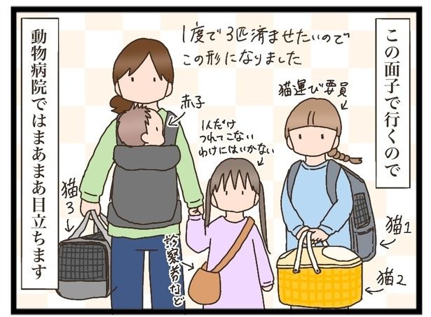 3. 3人の子を連れ、3匹の猫の病院へ。子どもと猫、全員の体調管理は大変すぎ!【著者インタビュー】