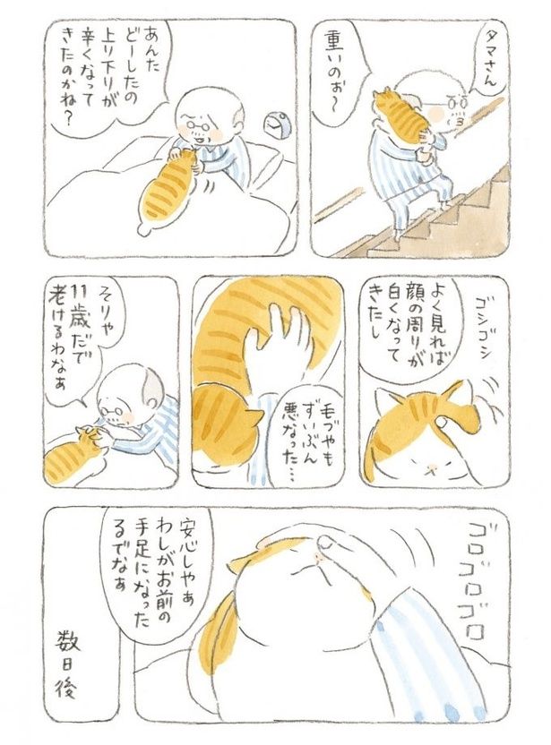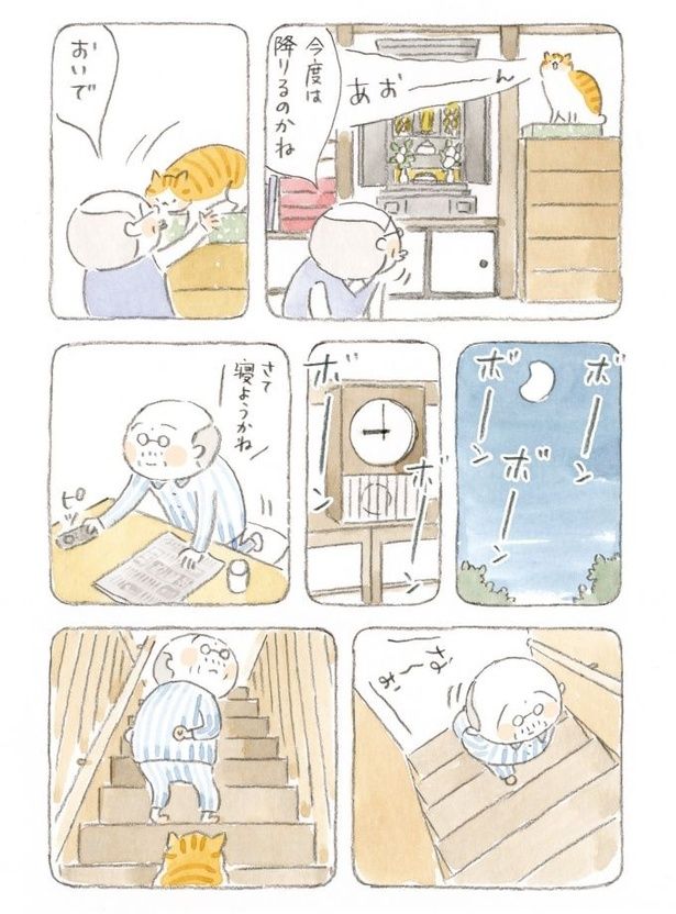 3. 猫も上り下りが辛いお年頃? じいちゃんはしんみりするも、外で目撃した姿は…/ねことじいちゃん3(12)
