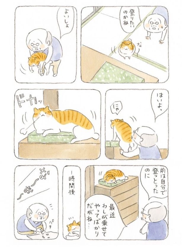 猫も上り下りが辛いお年頃? じいちゃんはしんみりするも、外で目撃した姿は…/ねことじいちゃん3(12)