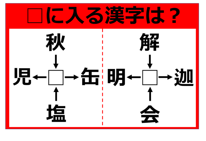 【漢字パズル】秋□、□児、塩□、□缶 □に入る漢字は何…!?