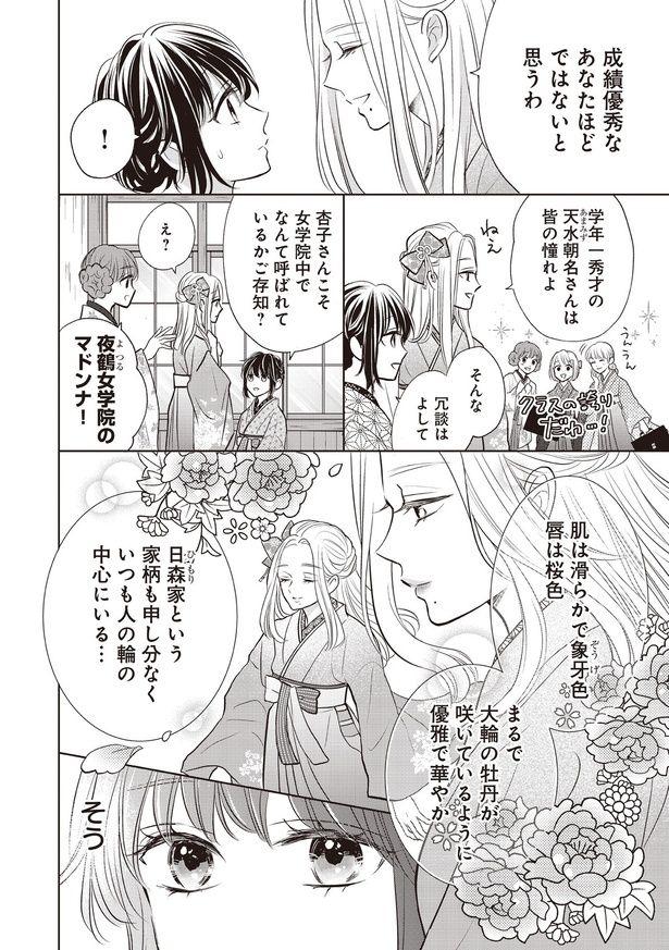 夜鶴女学院に通う少女・天水朝名(あまみずあさな)は、薬問屋として名高い天水家の娘。左手首へ浮き出た鱗のような痣によって家族からは“化け物”と虐げられ、学校でも素直になれず生徒と距離を置いていた。生徒たちが美男子の新人教師・時雨咲弥(しぐれさくや)の話で盛り上がる中、朝名には一族にとって好都合な縁談が舞い込んで――。『わたしの幸せな結婚』で知られる顎木あくみ氏原作の新シリーズをコミカライズした和風恋愛ファンタジー『人魚のあわ恋』をお楽しみください。