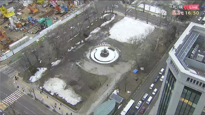 札幌です。大通公園もだいぶ地面が見えるようになってきました。