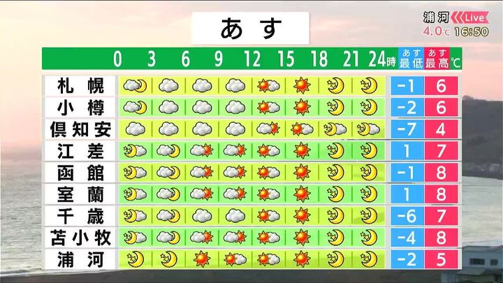 背景は16日午後5時ごろの浦河情報カメラ