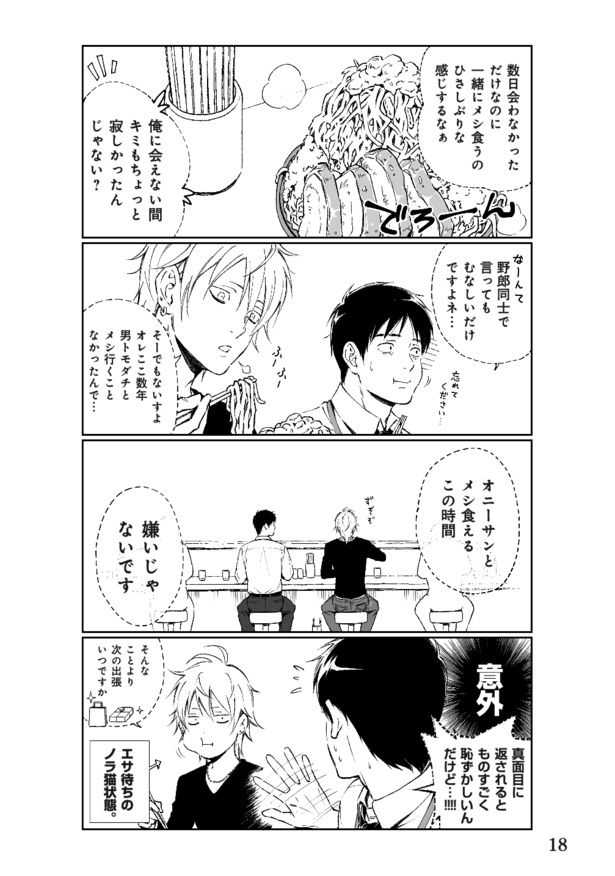 「無謀だった――…」。爆盛りのラーメンを前に、己の胃袋の限界を悟ったサラリーマン。追い込まれたそのとき、隣の席の若いお兄さんが「かわりに食いましょうか」と話しかけてきて…? 交わるはずのなかった二人が、ラーメンをきっかけにゆっくり交流を深めていく。お腹と一緒に心まで満たされる、じんわりあったかい2人の関係を描いた『ラーメン屋に並ぶお兄さん達をBLにしたい話』をお楽しみください。