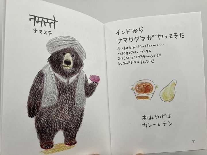 すずきさんが手がけた絵本『せかいくまかいぎ』では、世界各国のクマたちが、その土地の民族衣装を着て描かれています。
