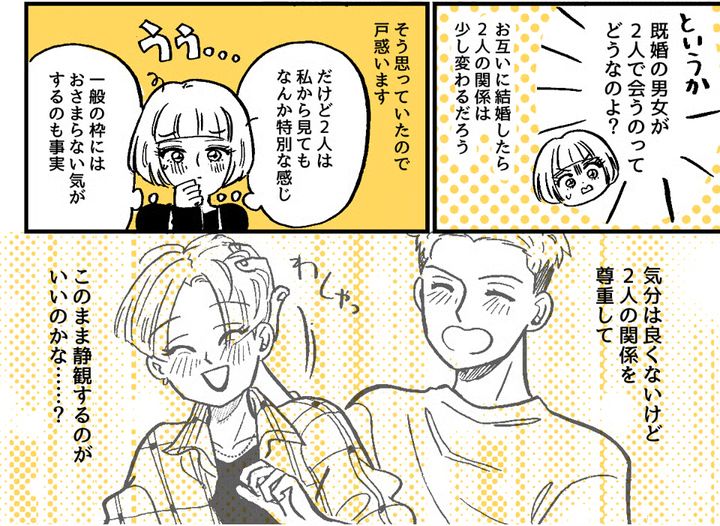 『夫は友達が元々少ない人なので、そこで女性だけど気の合う友達ができたから私なら喜んでくれると思ったらしいです。多分素で男女差別しない人なんだと思います。でも妻としては複雑ですよね。責めるとこっちが心の狭い人間だと思われて自分を責めたくなりました』出典:https://mamastar.jp/bbs/topic/4511921