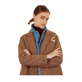 まじめな服ほどギャップが生きてくる、アイキャッチーなモチーフのワンポイント。バッグや靴よりもひかえめに、なおかつ洗練されて見える、ゴールドのアクセサリーで採用。