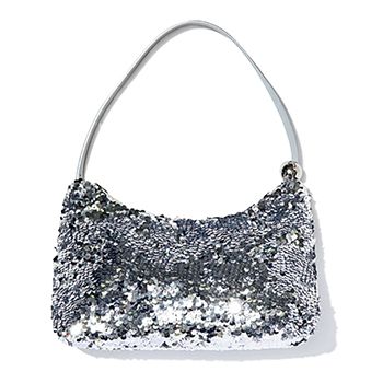 シルバーバッグ (13×24.5×7)/CHARLES & KEITH (CHARLES & KEITH JAPAN) 小ぶりなサイズでスパンコール。アクセサリーを盛らずとも装いが華やかに高まる。肩に引っかければ、ウエストマークにもなる存在感。
