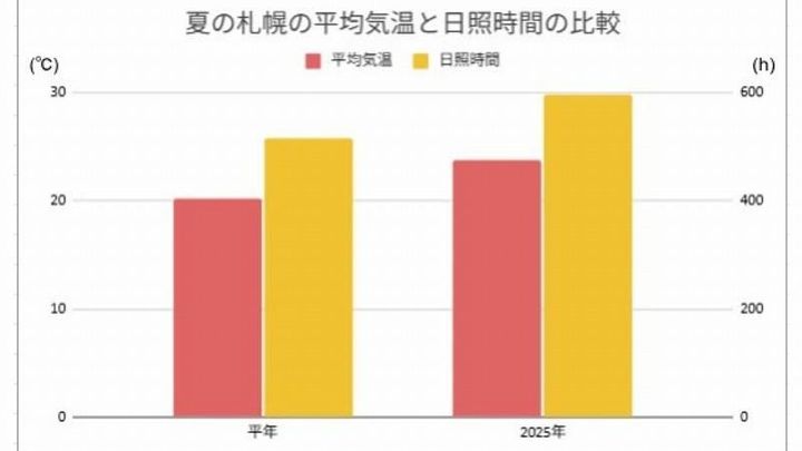 札幌の6月~8月の平均気温は平年で20.2度、2025年は23.7度。これは観測史上1位の記録です。
