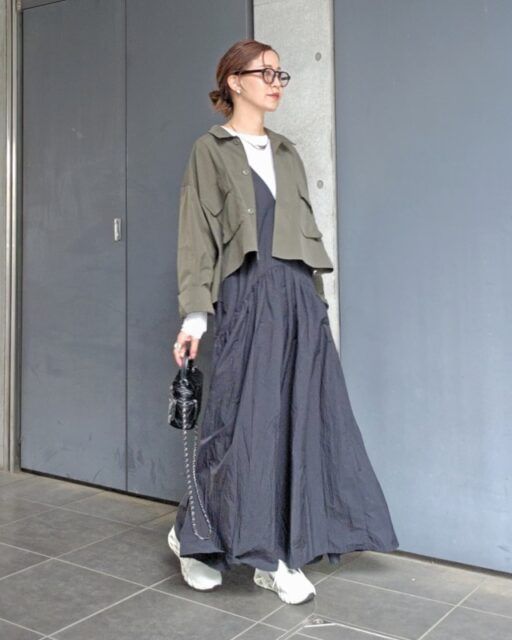 アリーナ会場のライブ参戦コーデはスカートやワンピースでも大丈夫。中でもおすすめは、動きやすくてリラクシーに決まる「ゆったりとしたワンピース・キャミワンピース」。着るだけでサマになる上に、スニーカーを合わせやすいですよ。