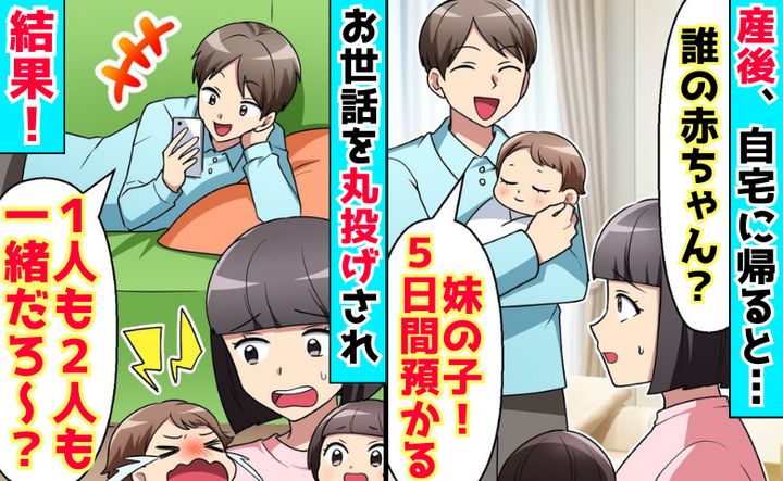 私「だ…誰!?」夫「妹が旅行で子ども預かった♪」出産直後、お世話係に→5日間とかムリ♡夫と義妹の悲惨な結末