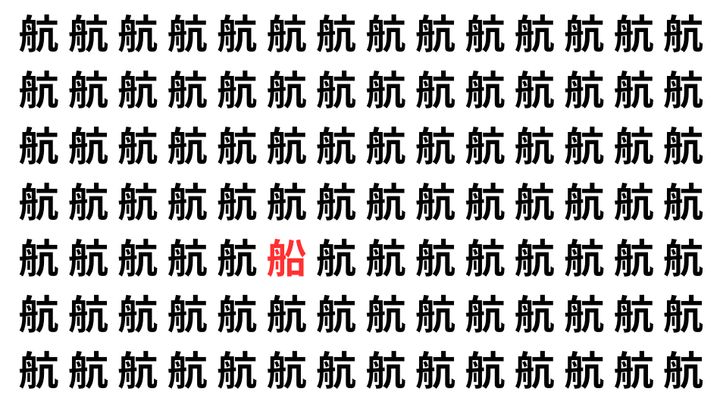 たくさんの「航」の中に、よく似た別の漢字が1文字だけ隠れています。