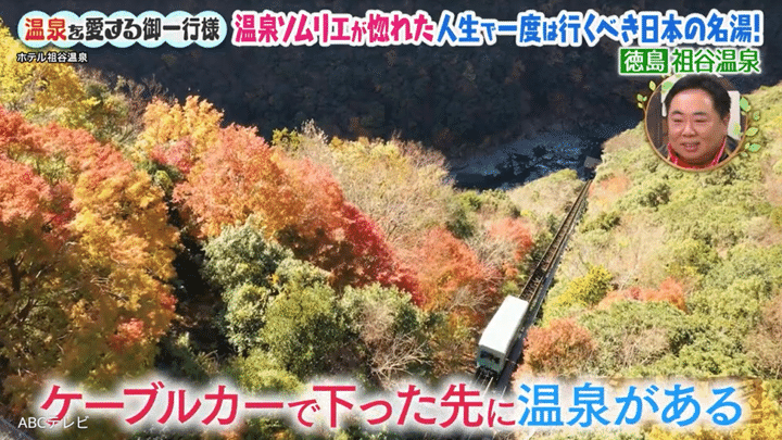 そんなカリスマ温泉ソムリエのスギちゃんがおすすめするのは、「数えきれないぐらい行っています」という徳島の祖谷(いや)温泉。日本三大秘境の1つ・祖谷渓をケーブルカーで下った先にあり、四季折々の景色の中で浸かる露天風呂が人気だ。
