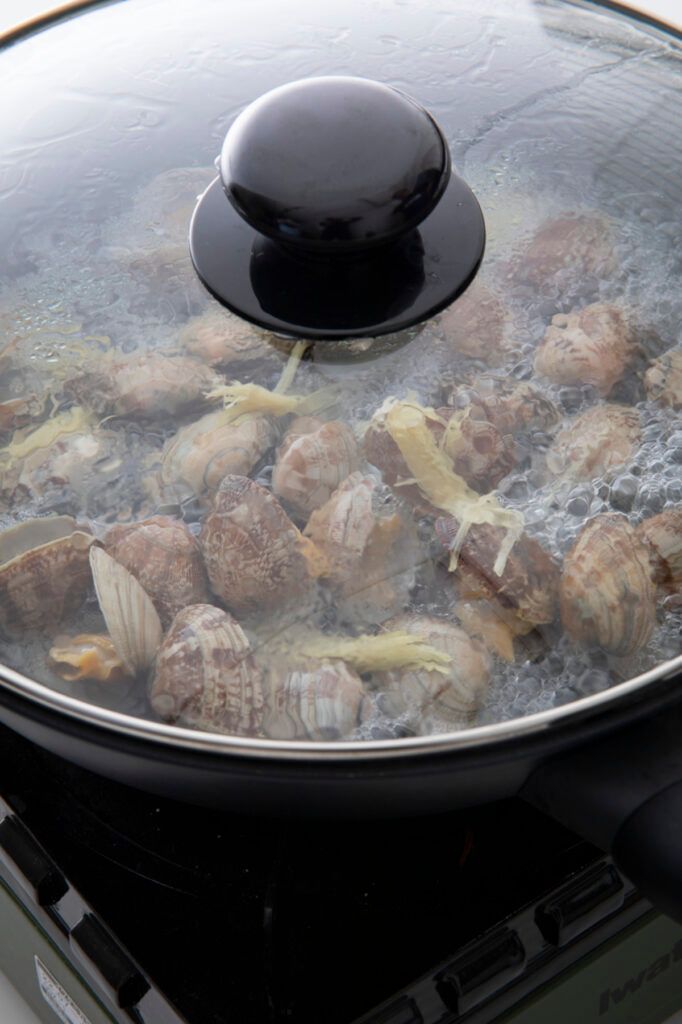 3. フライパン×強火でふっくら!あさりの酒蒸し。砂抜きのコツも