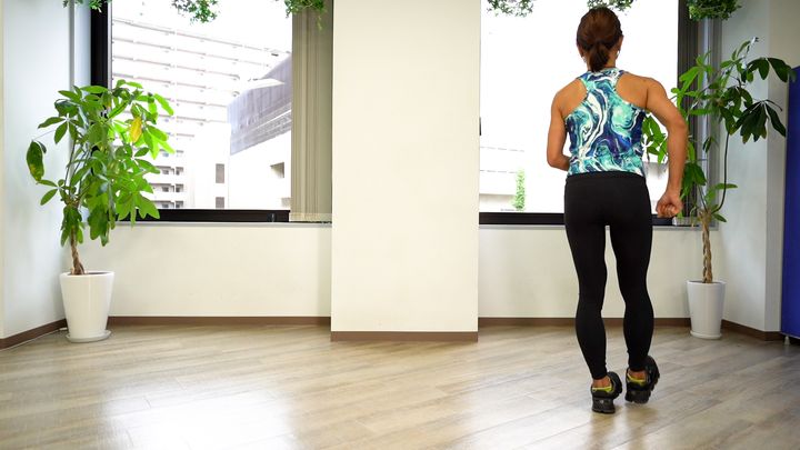 2.細かいステップで膝を曲げずに歩き続ける