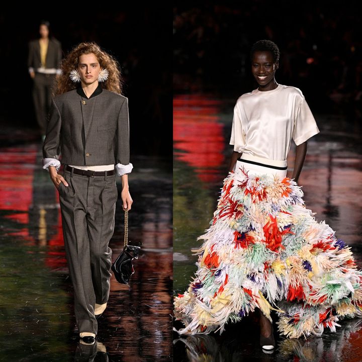マチューは一見シンプルに見える服の中に、驚くほど高度な職人技を忍ばせます。ツイードに見える手編みのニット、デニムに見えるオーガンザなど、素材認識を裏切る技巧は彼の代名詞。