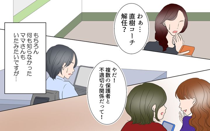 私の告げ口でコーチは解任。瞬く間に保護者に噂が広まり…/春子の場合<習い事コーチと5人の妻 22話>【夫婦のリアル まんが】