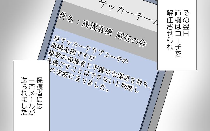 裏切られたことがわかった春子は、直樹の保護者との関係についてサッカーチームの代表に連絡しました。すると、なんと彼は前のチームでも同じ問題を起こしていたことがわかったのです…。