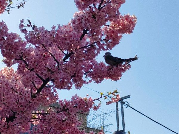 写真では少し暗く写ってしまいましたが、桜にヒヨドリの姿も。 桜と野鳥の組み合わせは、まるで春の風景画のようでした。