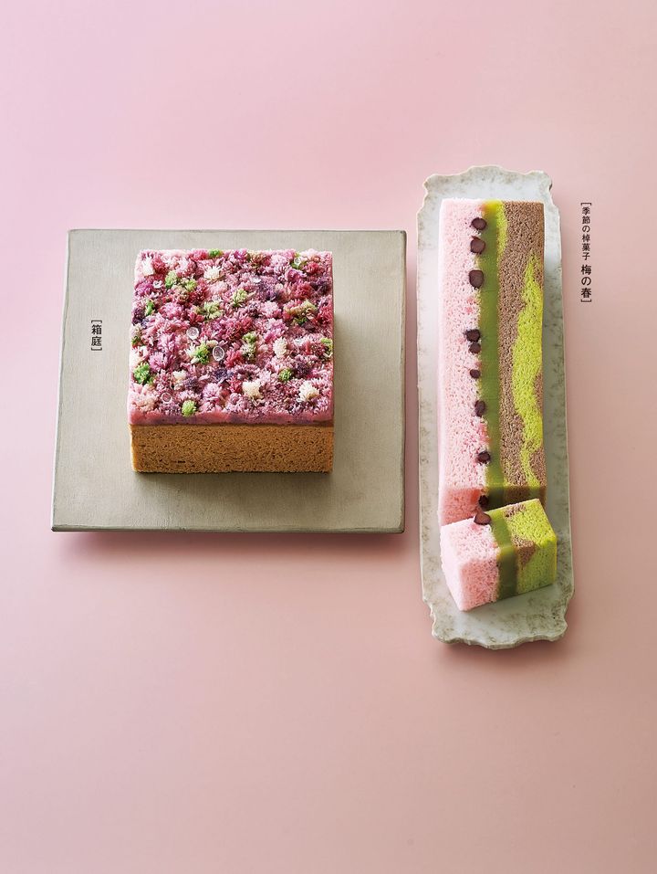 葉山を拠点に活動する和菓子作家・小島直子さんが手がけるブランド。シグネチャーの「箱庭」は、浮島の上にあんで静かな情景を映した一品。土の気配を感じさせるしっとりとした浮島は、ほうじ茶の香りがふわり。上には花々や若葉、こけを思わせる色とりどりのあんが広がり、錦玉製の滴が光を受けてきらりと瞬きます。小さな庭をそっとのぞき込むように眺め、味わい、心を遊ばせる――。情緒豊かな和菓子とともに、そんな上質な時間を過ごしてみてはいかが? 1個[13.5×13.5×6cm]¥5,000 ※要予約。[季節の棹菓子 梅の春]